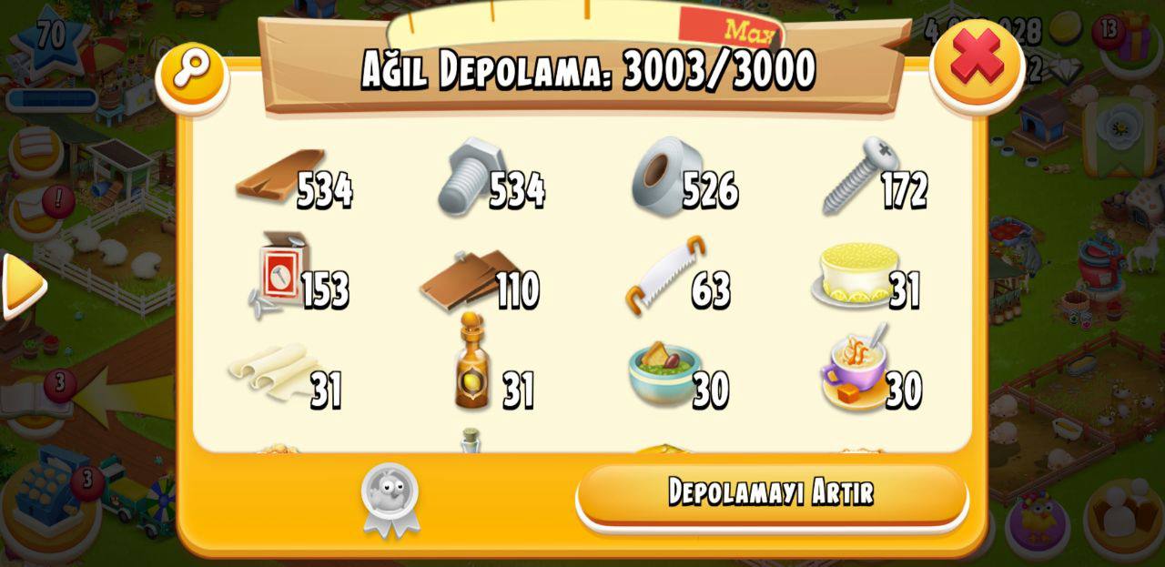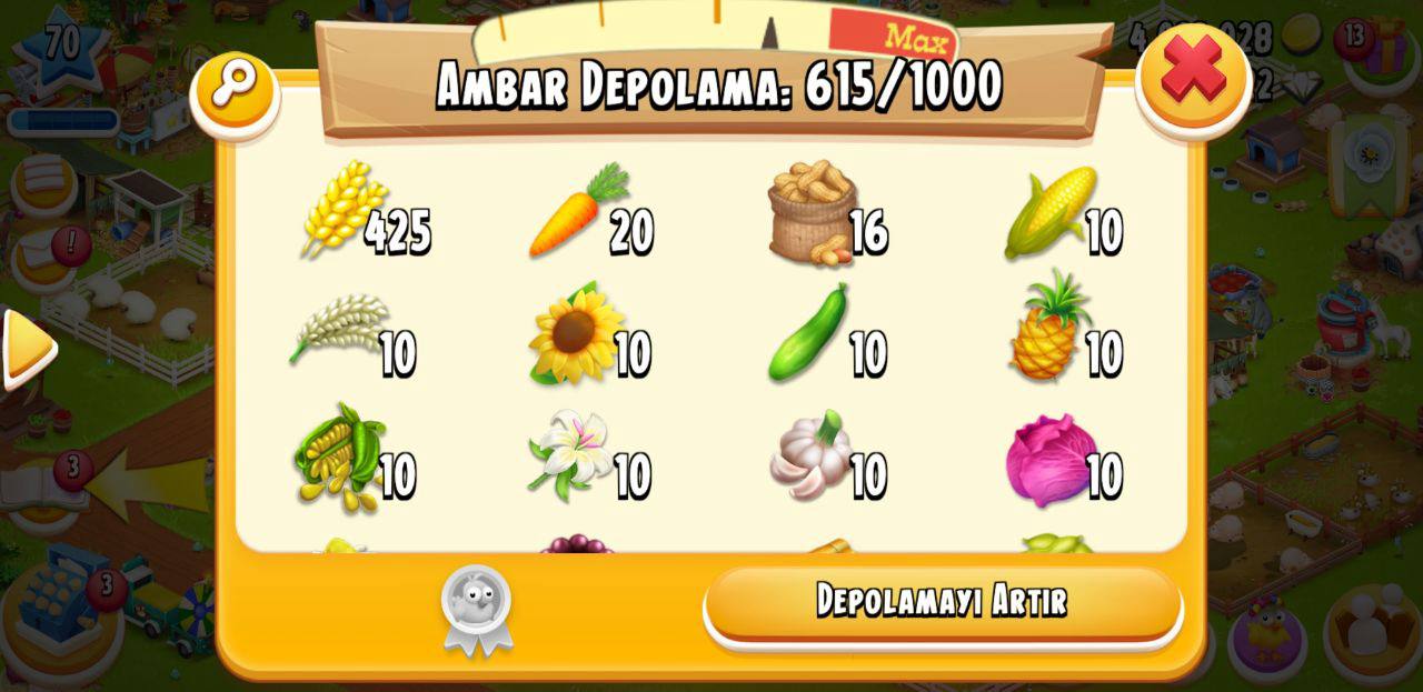 Hayday Satılık Hesap > Ömürlük 70 Seviye Hesap